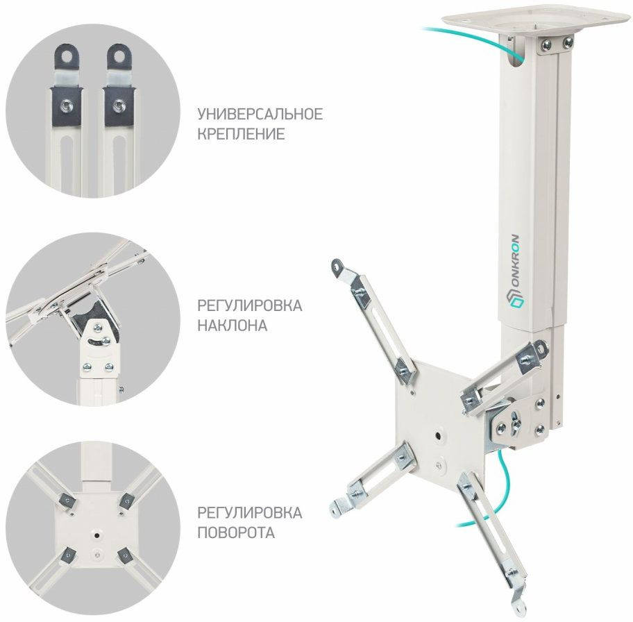 Кронштейн для проекторов ONKRON Кронштейн для проектора K5A белый макс.10кг потолочный поворотно-выдвижной и наклонный