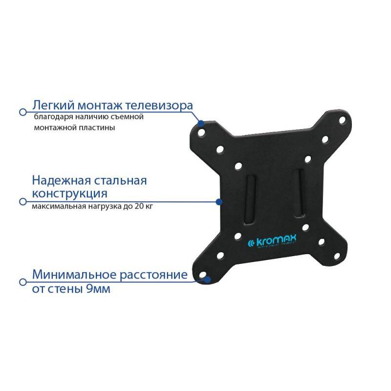 Кронштейн Kromax Кронштейн для телевизора Kromax VEGA-3 new черный 15"-32" макс.20кг настенный фиксированный (24043)
