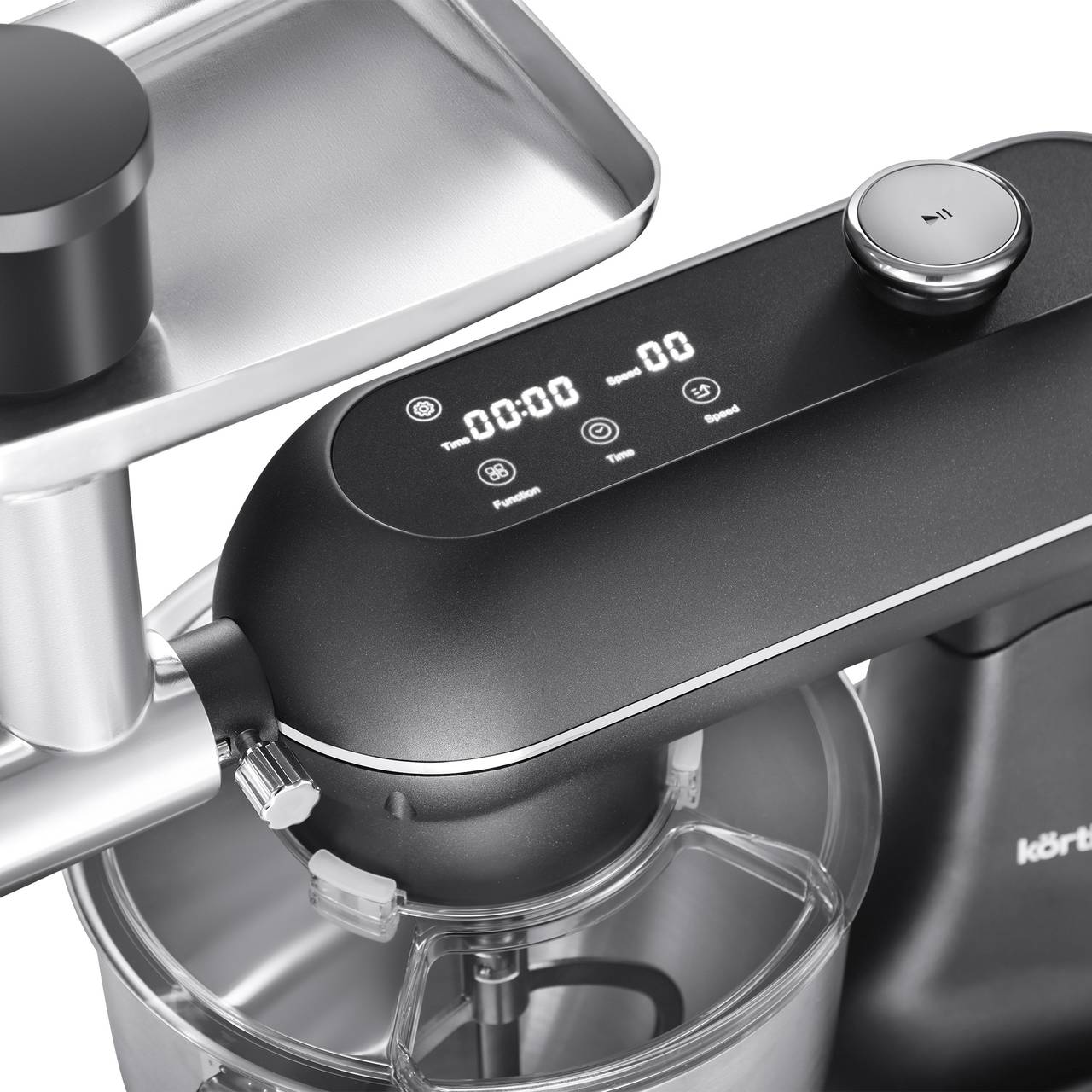 В комплект входят 5 основных насадок: насадка для смешивания, крюк для теста, венчик и насадка-мясорубка. Это позволяет выполнять широкий спектр кулинарных задач — от замешивания теста до приготовления фарша.