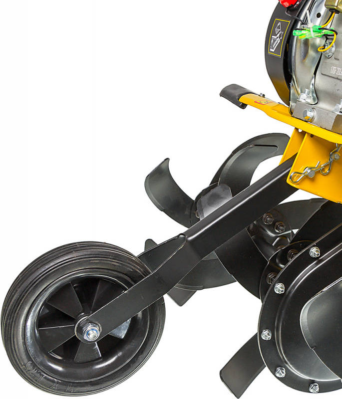 Двигатель мощностью 6.8 л.с. Ширина культивации 90 см Элементы управления расположены на рукоятках Разборная рукоятка и сошник для удобства хранения и перемещения Щиток для безопасной работы Возможность регулировки глубины и ширины обработки почвы Защита от низкого уровня масла