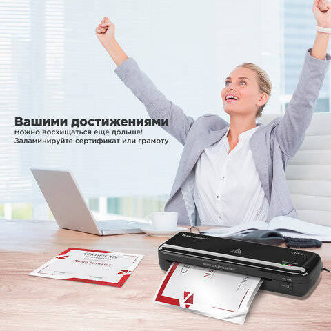 Ламинатор Brauberg CHF-01 А4, 60-150 мкм, 25 см/мин, с подарочным набором для ламинирования: резак, обрезчик углов, пленка 52 шт., 532861