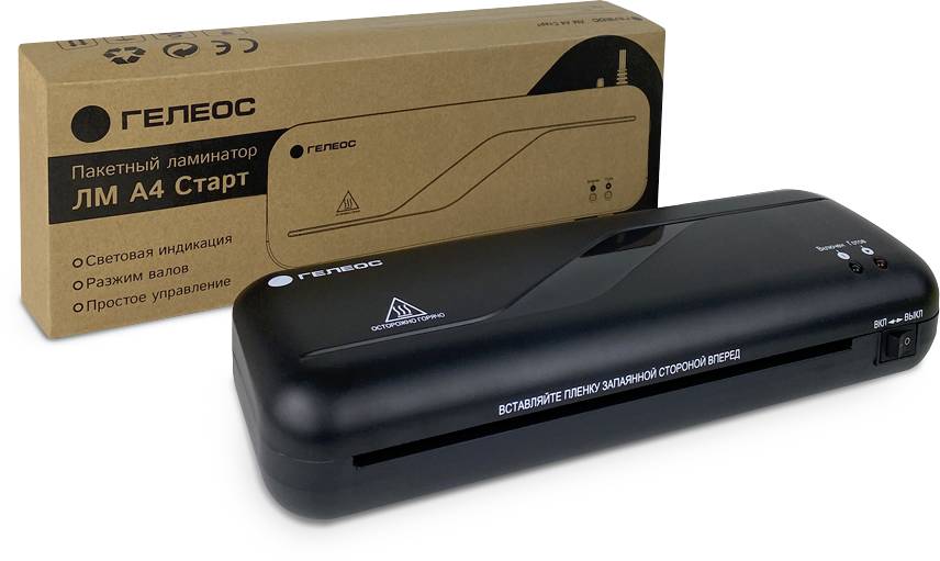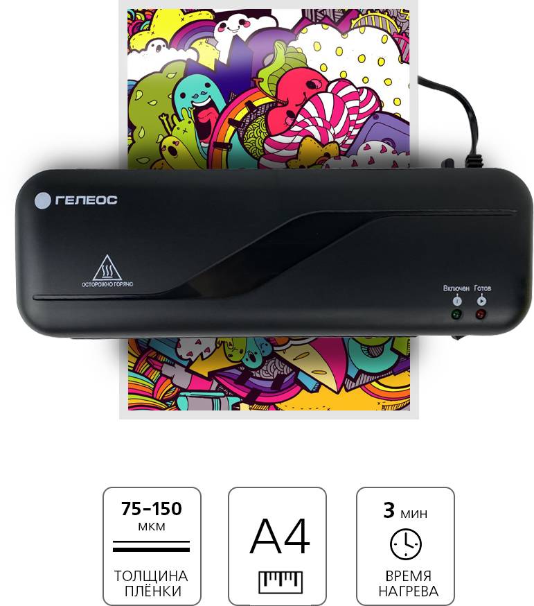 Ламинатор Гелеос ЛМ A4 Старт, А4, 2х150 , 300 мм/мин, 2 вала, пласт. корпус, мах толщина 0,6мм (ЛМ_А4С)