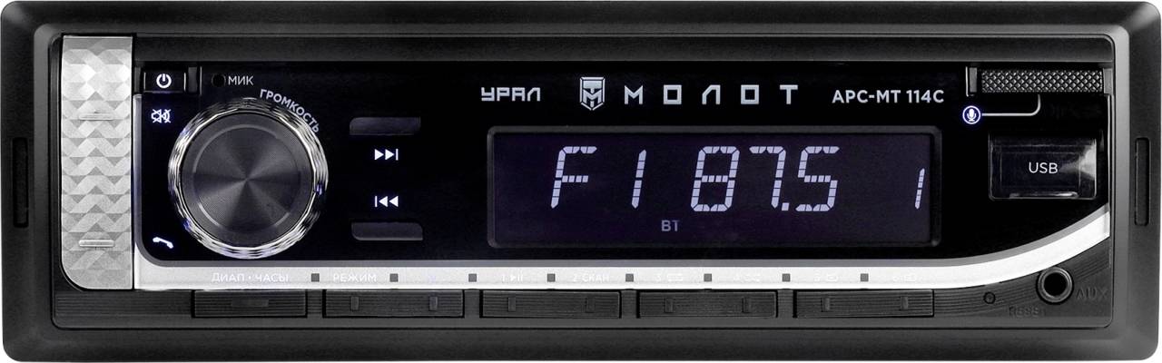 Автомагнитола URAL Молот АРС-МТ 114C 1DIN 4x160Вт v5.0 USB 2.0 AUX 2