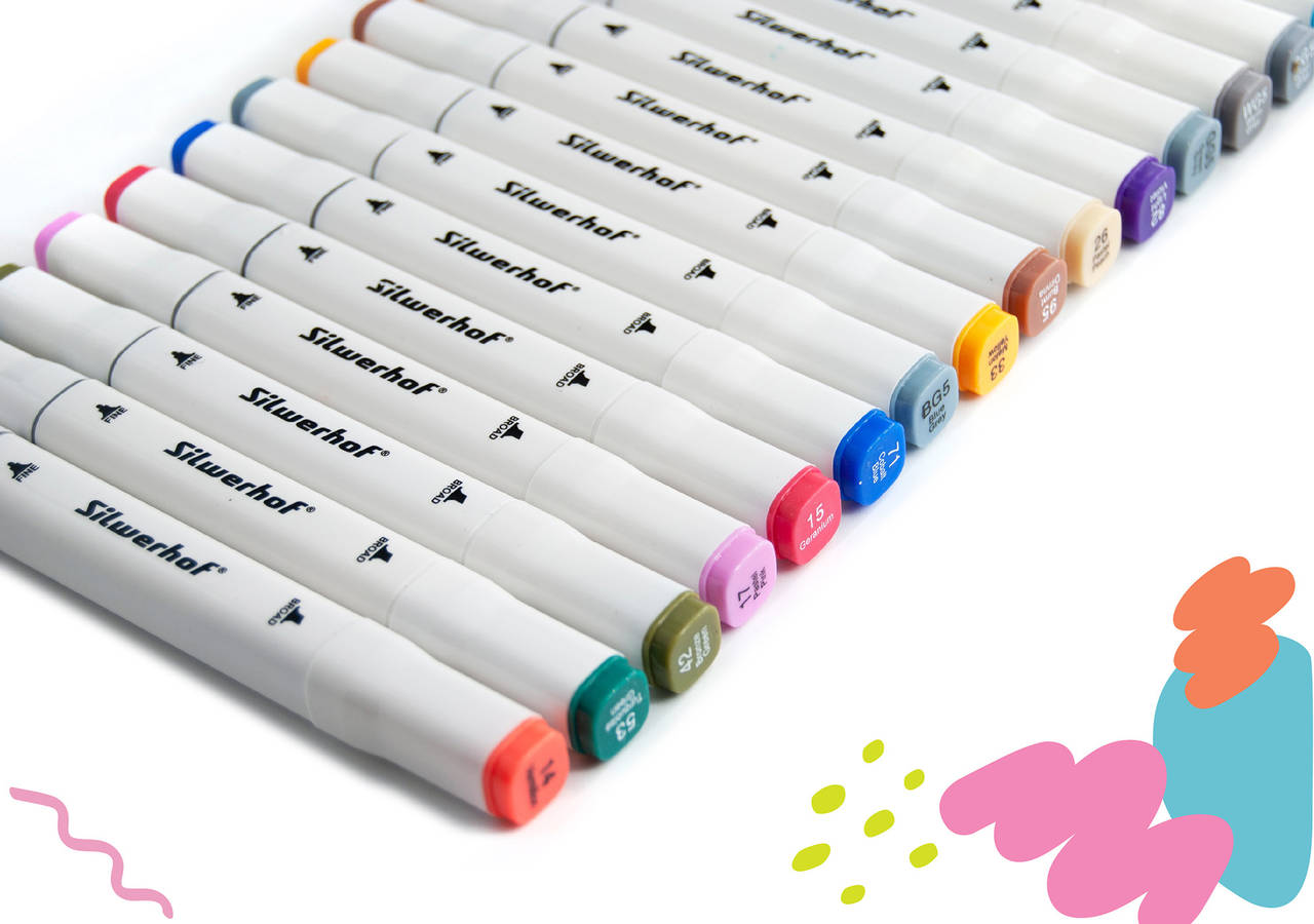 Маркер SILWERHOF Набор маркеров для скетчинга двойной пиш. наконечник 1-7мм пластиковая коробка