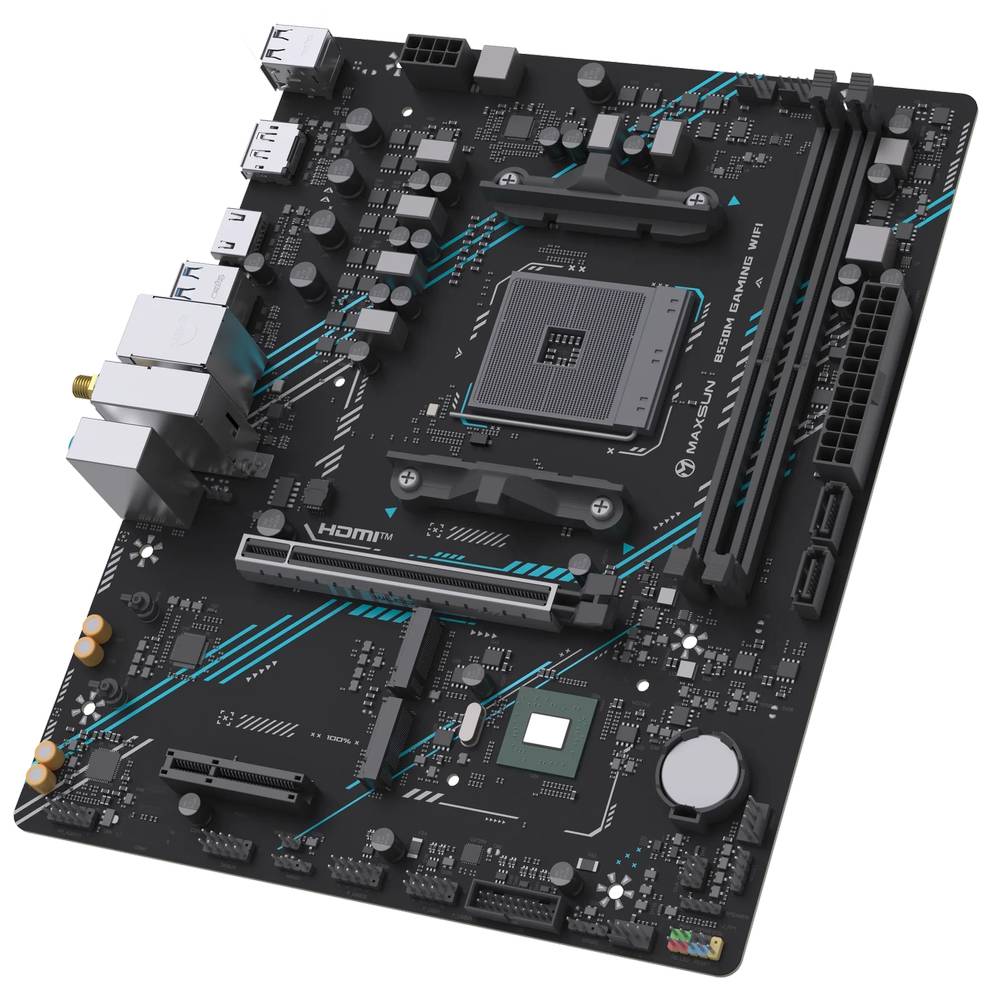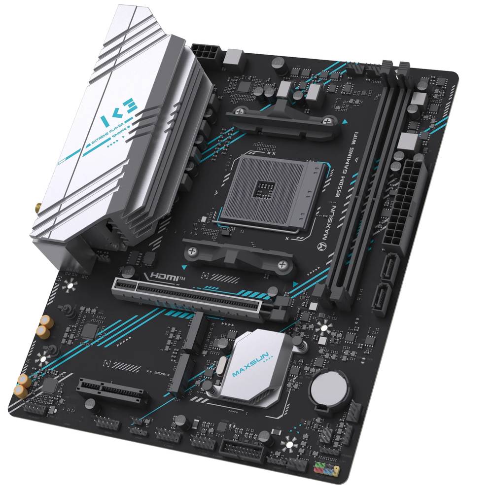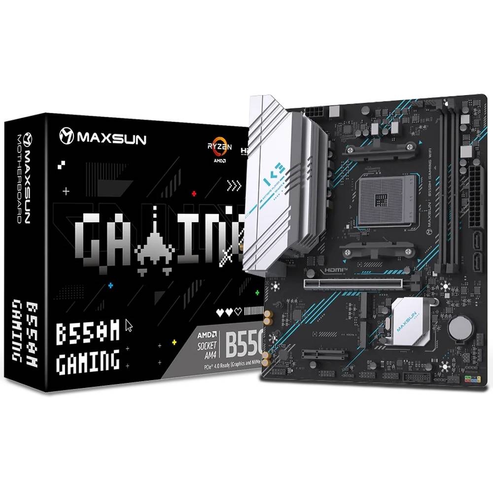 Материнская плата Maxsun MS-B550M GAMING WIFI B550, AM4, 2*DDR4, 1*PCIEx16, 1*PCIEx4, 1*PCIEx1, 2*M.2, 4*USB3.2Gen1, 6*USB2.0, 2*SATA3.0, 1G, DP, HDMI, M-ATX, RTL