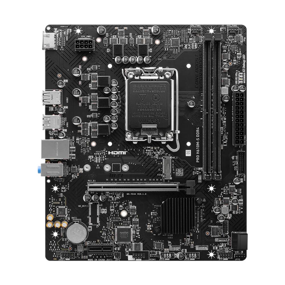 Материнская плата MSI PRO H610M-S DDR4 H610, , 2*DDR4, 1*PCIEx16, 1*PCIEx1, 1*M.2, 2*USB3.2Gen1, 4*USB2.0, 2*SATA3.0, 1G, HDMI, M-ATX, RTL
