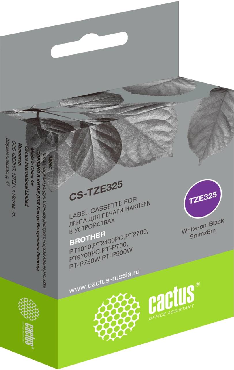 Матричный картридж CACTUS Картридж ленточный CS-TZE325 TZE-325 белый на черном 9x8 для Brother 1010/1280/1280VP/2700VP