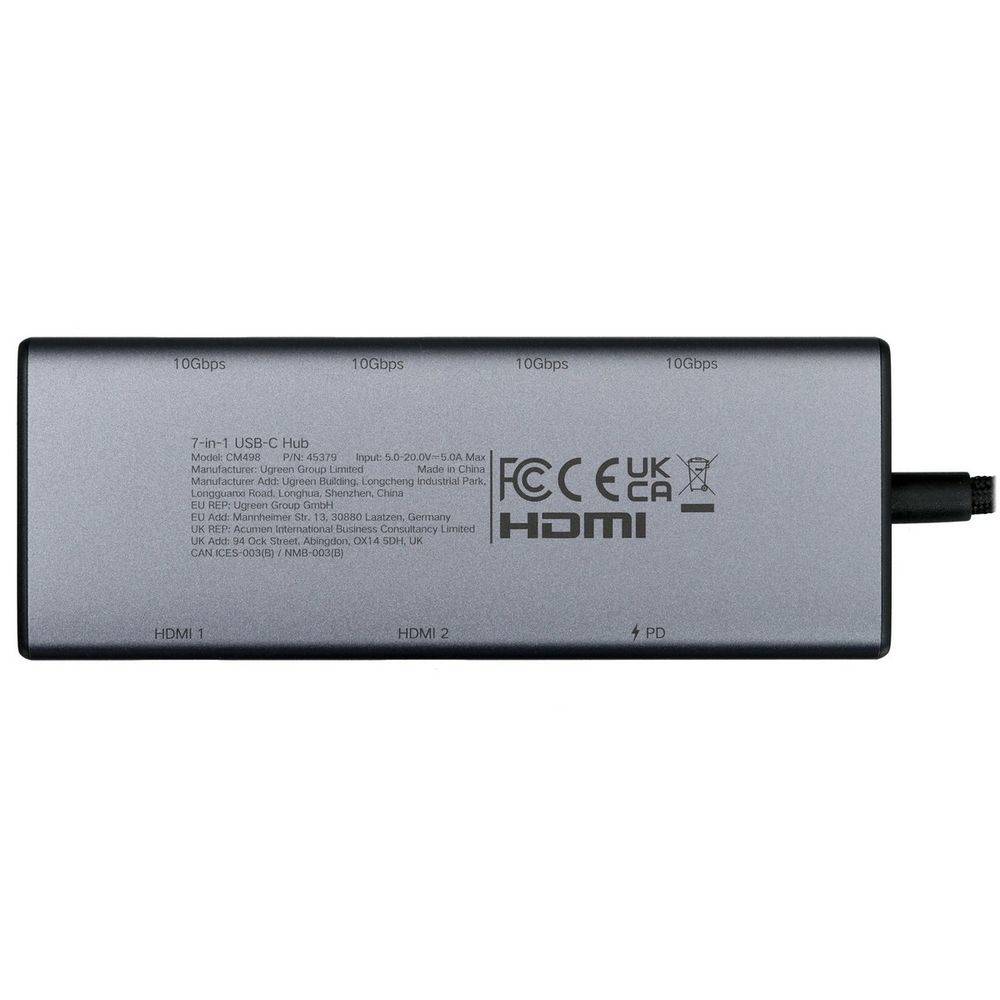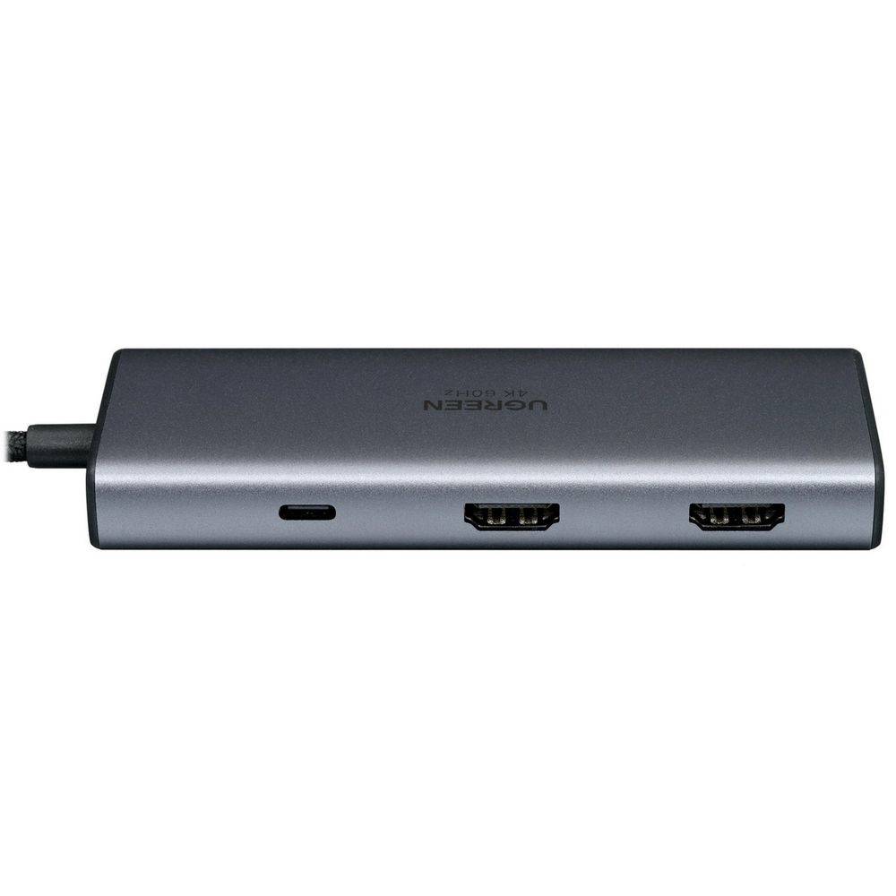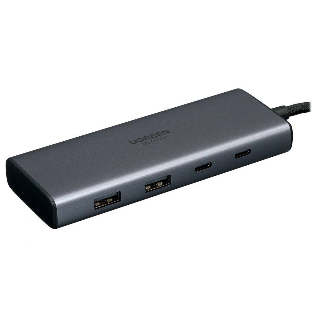 Медиаконвертер UGREEN Конвертер CM498  4-in-1 4K@60Hz USB-C to 2*USB-A 3.2+2*USB-C 3.2+2*HDMI+PD Port Converter. Цвет:серый