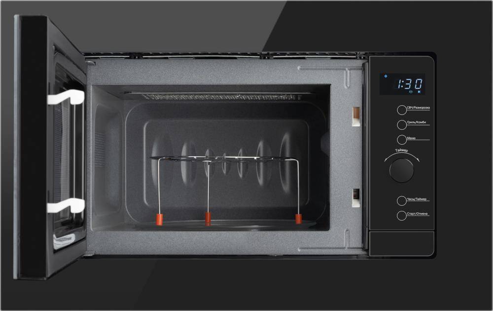 Встраиваемая микроволновая печь Weissgauff с объемом 20 литров, выполненная в черном цвете, равномерно разогревает еду при помощи поворотного стола, а также оснащена грилем с возможностью работы в комбинированном режиме и набором программ автоменю! Объем 20 литров дает вам полную уверенность в том, что вы сможете разместить в ней сразу весь необходимый объем пищи! Поворотный стол диаметром 245 мм не только обеспечивает равномерный прогрев блюда со всех сторон, но и удобно извлекается из камеры, делая легкими его очистку и уход Камера из нержавеющей стали воплощает в себе надежность и качество, ведь её стенки прочные, устойчивые к перепадам температур и механическим воздействиям, а также легко отмываются от возникающих загрязнений Автоменю на 9 программ открывает по-настоящему богатые возможности по настройке вашей микроволновой печи под требуемые особенности продуктов. Встроенный гриль - позволит готовить вам аппетитное мясо, рыбу или овощи, поджаренные до хрустящей корочки! Комбинированные режимы - при которых микроволны и гриль работают вместе, дополняя друг друга, открывают еще больше возможностей по приготовлению в данном устройстве! Разморозка по весу - позволит подготовить замороженные продукты к дальнейшему приготовлению, обеспечивая равномерный результат без перегретых краев или непроработанных участков внутри. Блокировка от детей, благодаря которой вы всегда сможете избежать ненужных нажатий на элементы управления, например, во время уборки микроволновой печи или, чтобы предотвратить её незапланированное включение детьми. Сочетание кнопочного и поворотного управления - это настоящая гордость Weissgauff, ведь кнопочный блок является интуитивно понятным, а механический поворотный элемент невероятно отзывчив и удобен в обращении. Удобный цифровой дисплей с крупной индикацией позволит сделать процесс взаимодействия с микроволновой печью еще более комфортным и простым |