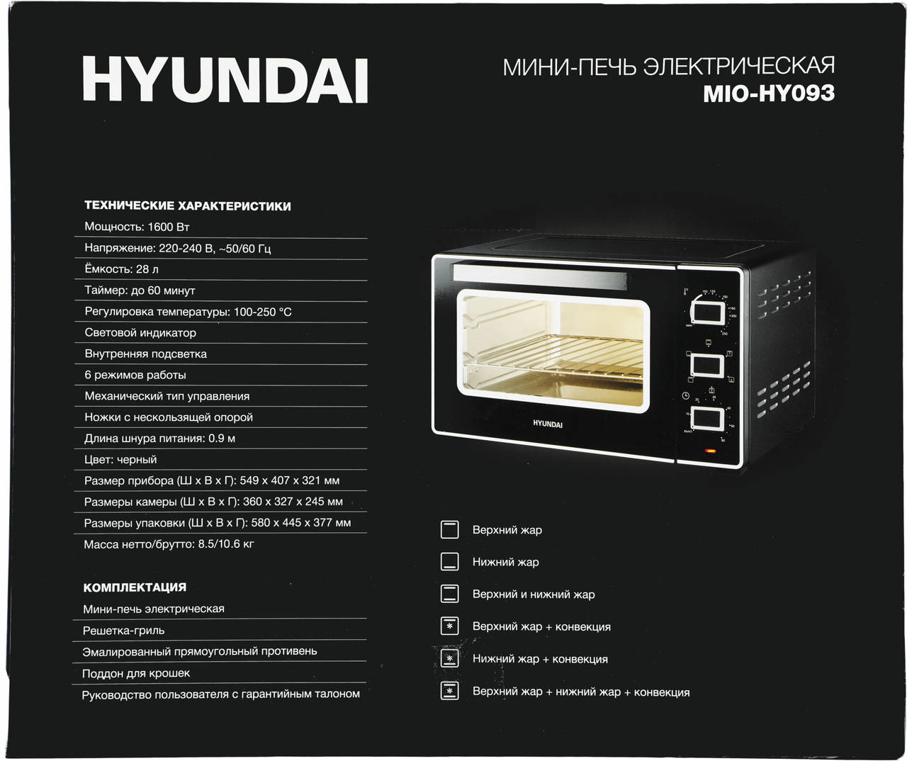 Мини-печь HYUNDAI MIO-HY093 28л. 1600Вт черный