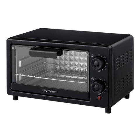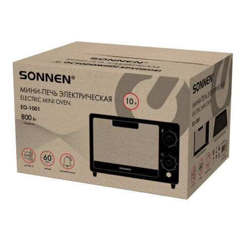Мини-печь SONNEN электрическая EO-1001, 800 Вт, 10 л, таймер, нагрев до 230 °C, черная, 458308