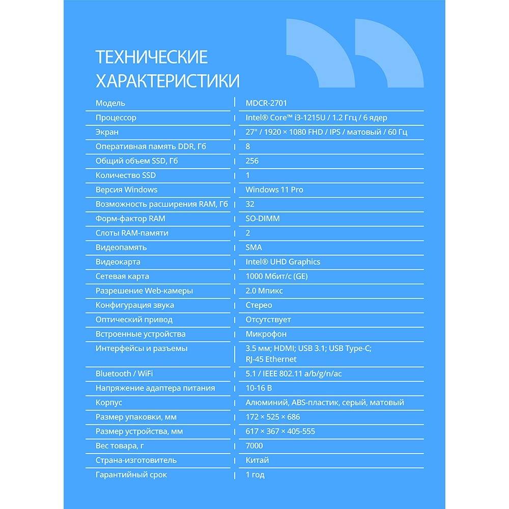 Моноблок AiO-MDCR-2701 27" FHD IPS / RJ45 / Windows 11 Pro (CBR-AiOMDCR2701-HN27I3G12-8G256G)