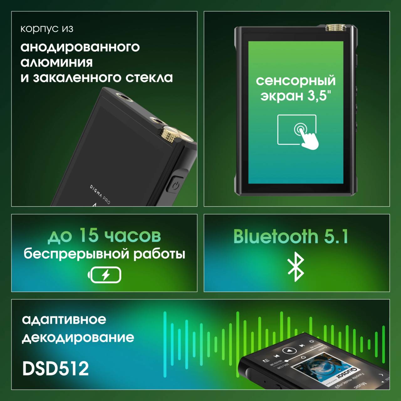MP3-плеер Digma Плеер Hi-Fi Flash Pro XT7 черный/золотистый/3.5"/microSD/microSDHC