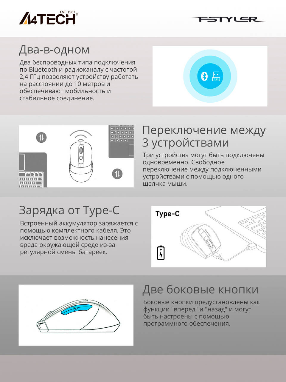 Тип беспроводного соединения мыши: | Bluetooth/Радио |