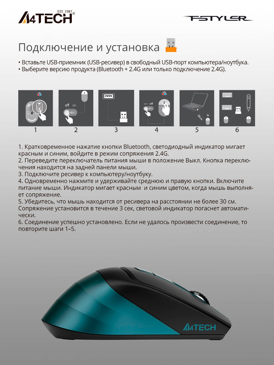 Описание: | Мышь A4TECH Fstyler FB35C зеленый оптическая (FB35C MIDNIGHT GREEN) |