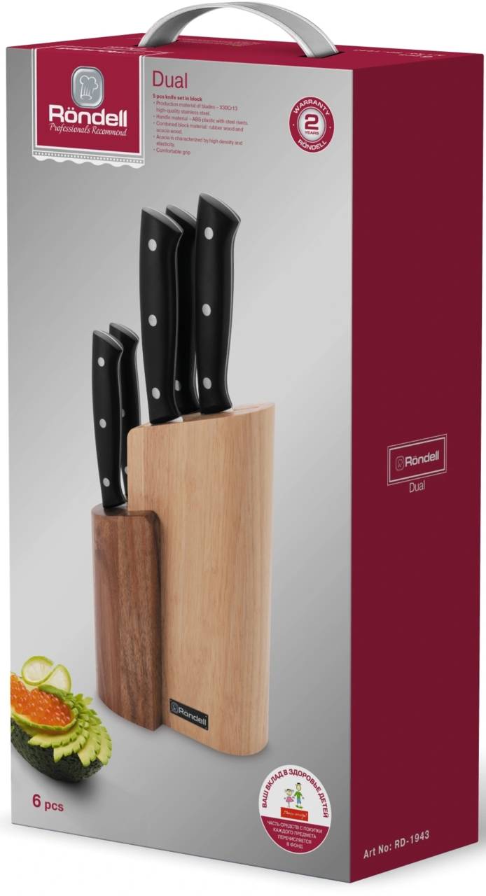 Нож кухонный RONDELL Набор ножей кухон. Dual RD-1943 компл.:6предм. с подставкой черный подар.коробка
