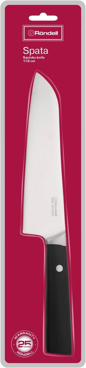 Нож кухонный RONDELL Spata RD-1139 стальной сантоку лезв.178мм прямая заточка черный блистер