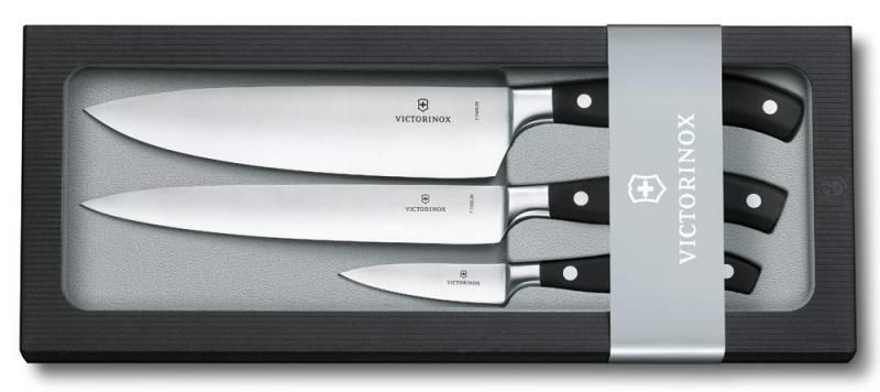 Нож кухонный VICTORINOX Forged Chefs компл.:3шт черный подар.коробка 7.7243.3