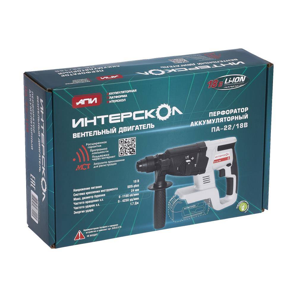 Перфоратор INTERSKOL аккумуляторный бесщеточный ПА-22/18В ИНТЕРСКОЛ 649.0.0.70