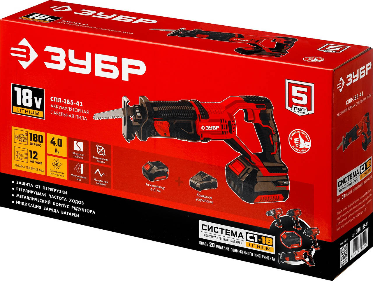 Универсальное изделие для различных видов пиления; литий-ионная технология ЗУБР нового поколения: увеличение производительности на 35%; электронная система защиты от перегрузки, перегрева и глубокой разрядки; отсутствие эффекта памяти; отсутствие потери мощности в процессе работы.