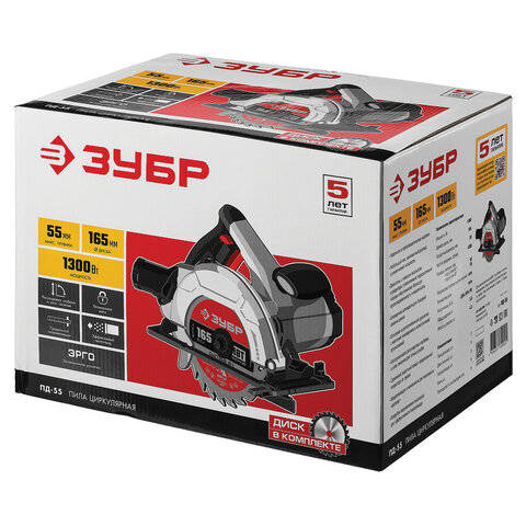 ЗУБР Пила циркулярная, 1300 Вт, 4700 оборотов/мин, диск 190 мм х 20 мм, ПД-55