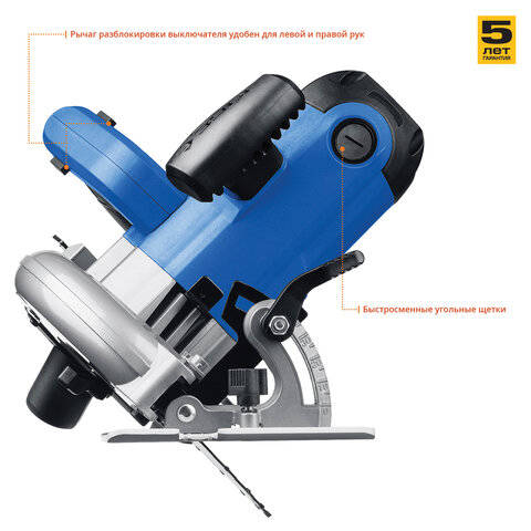 Комплект поставки:Пила циркулярная, Диск пильный, Направляющая, Ключ, Руководство по эксплуатации.