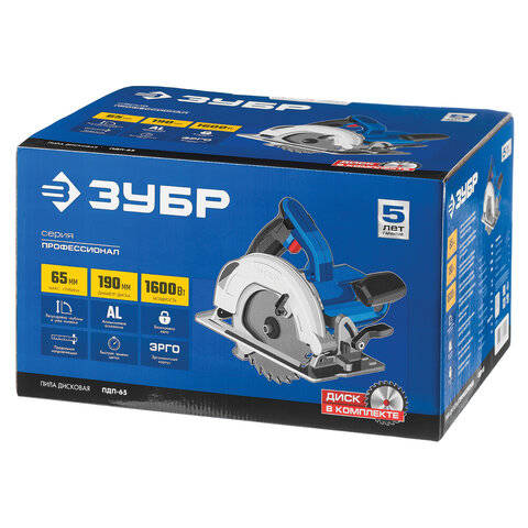 ЗУБР Пила циркулярная, 1600 Вт, 5000 оборотов/мин, диск 190 мм х 20 мм, ПДП-65