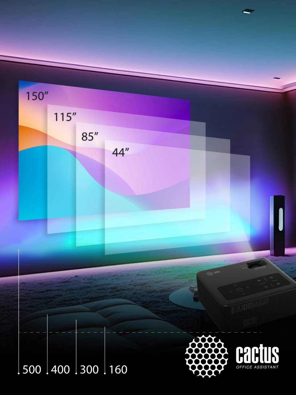 Проектор CACTUS CS-PRM.01B.Full HD LCD 19000Lm LS 700Lm ANSI 2500:1 ресурс лампы:50000часов 2xUSB typeA 2xHDMI 1.8кг