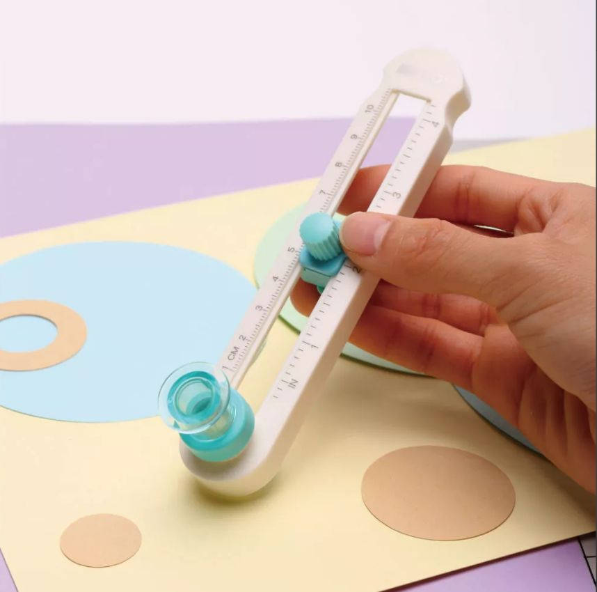 Мини-кругорез Диапазон диаметров от 2 до 20 см Направляющая линейки в дюймах и сантиметрах Используется для резки различных видов материалов, включая бумагу, фотографии, пластиковую пленку, конверты и этикетки