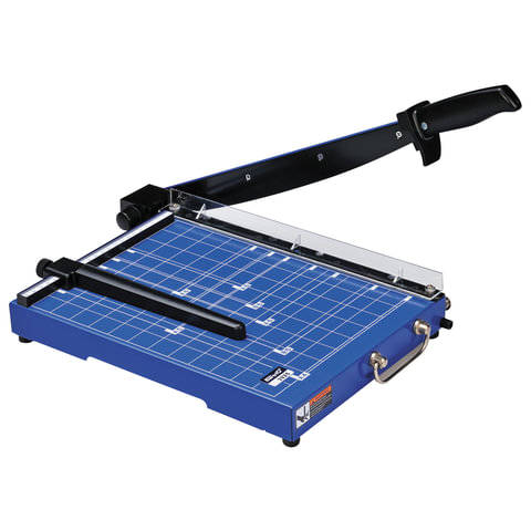Сабельный резак A4 предназначен для резки до 15 бумажных листов. Защитный экран предотвращает вероятность прикосновения пользователя к ножу резака во время работы. Прочное металлическое основание.