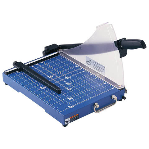 Сабельный резак A4 предназначен для резки до 20 бумажных листов. Защитный экран предотвращает вероятность прикосновения пользователя к ножу резака во время работы. Прочное металлическое основание.