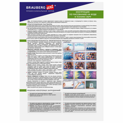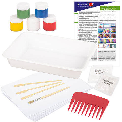 Набор для рисования на воде Эбру BRAUBERG ART предназначен для создания узоров на поверхности воды с последующим их переносом на бумагу и другую шероховатую поверхность. В наборе есть все необходимое для рисования. Для развития творческих способностей.