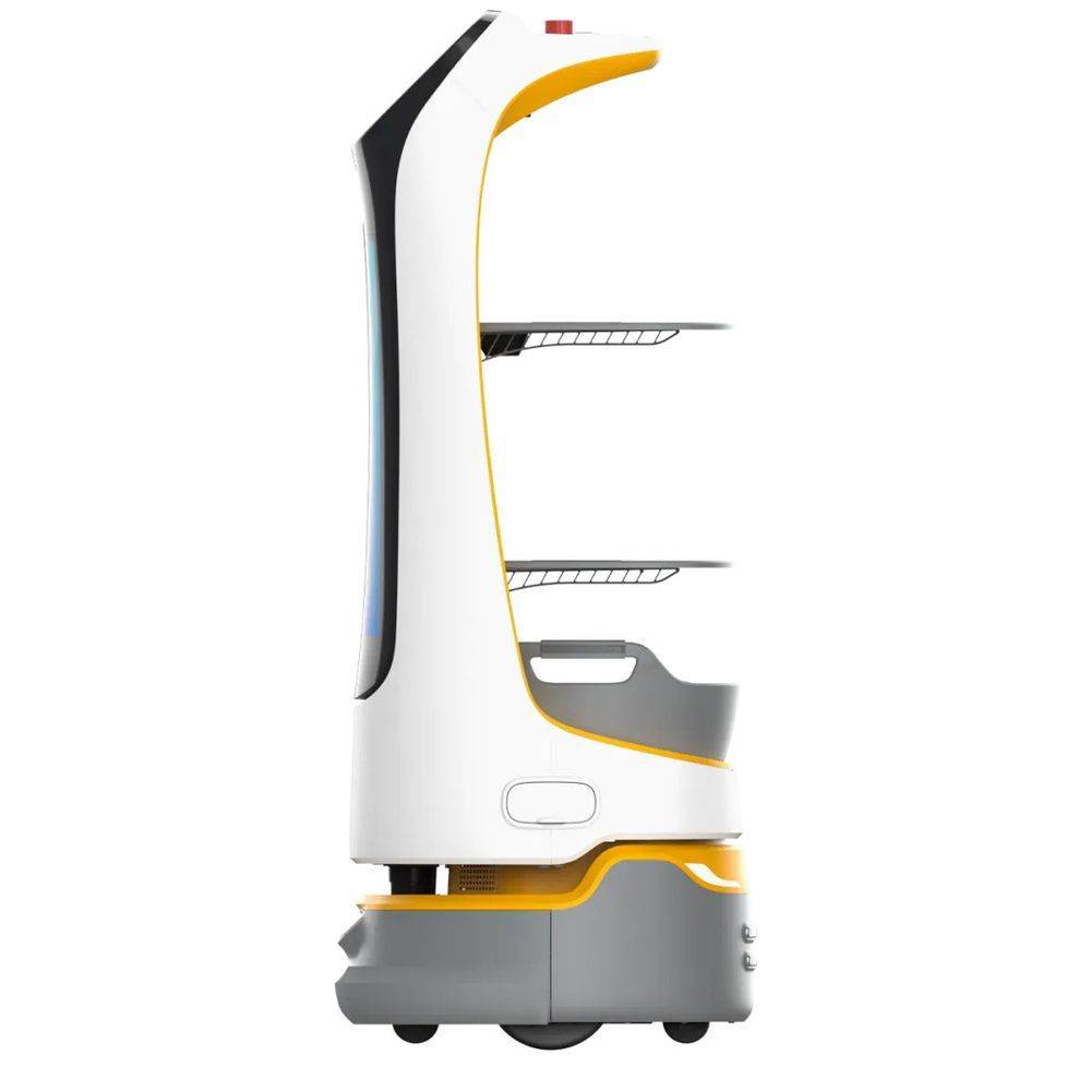 | Особенности: | Для использования внутри помещений. Режимы: привлечение клиентов, сопровождение, «круиз», доставка и «день рождения». Распознавание лиц. Широкоугольная камера типа "рыбий глаз". Съемные лотки (полки): 352x340мм. Расстояние между лотками (сверху вниз): 248/253/223мм. Датчики лотков. Минимальный коридор для проезда: 55см (низ)/52см (верх). Предупреждение о низком уровне заряда аккумулятора и автоматическая подзарядка. |