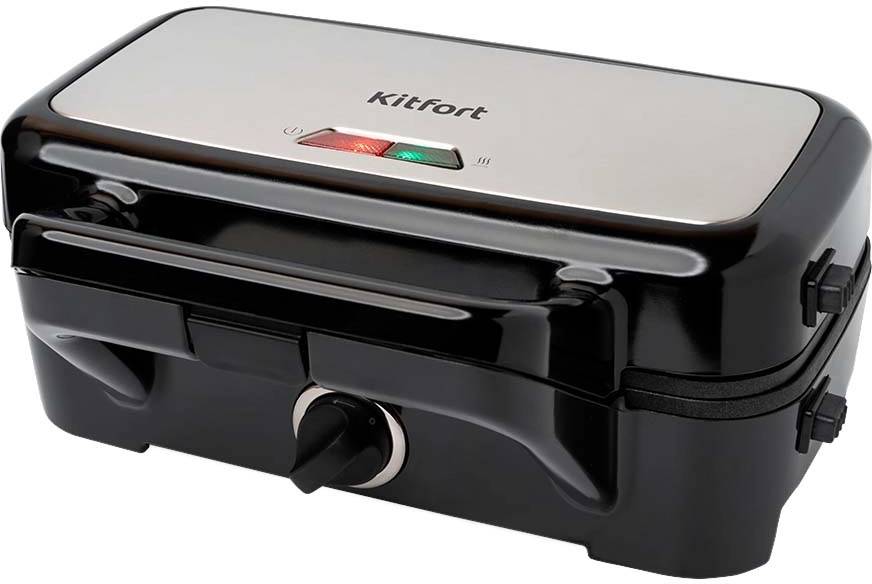Бутербродница KITFORT Вафельница КТ-1674 1200Вт черный/серебристый