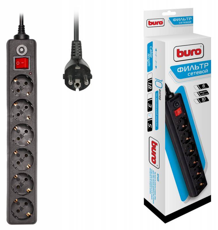 Сетевой фильтр Buro 600SH-5-B 5м (6 розеток) черный