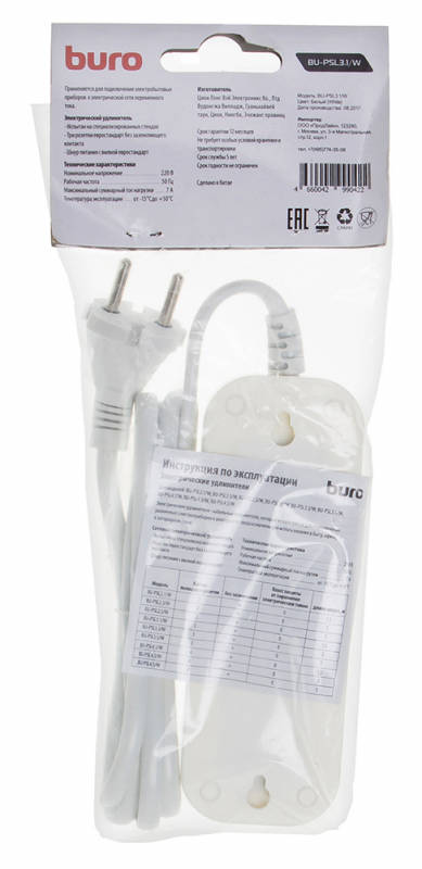 Сетевой фильтр BURO Сетевой удлинитель BU-PSL3.1/W 1.5м918602-1918602-2918602-3918602-4