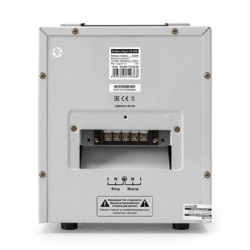 Сетевой фильтр EXEGATE EX291725RUS Стабилизатор напряжения  Expert AS-5000 (5000ВА, вход 140...260В, двойная цифр. индикация вход/вых. напряжения, выход 220В±8%, КПД 98%, 5 уровней защиты, метал. корпус, клем