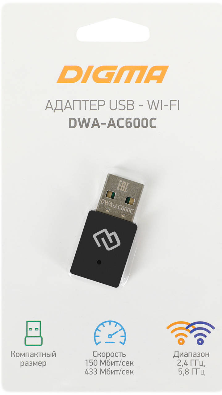 Сетевая карта Digma Сетевой адаптер WiFi DWA-AC600C AC600 USB 2.0