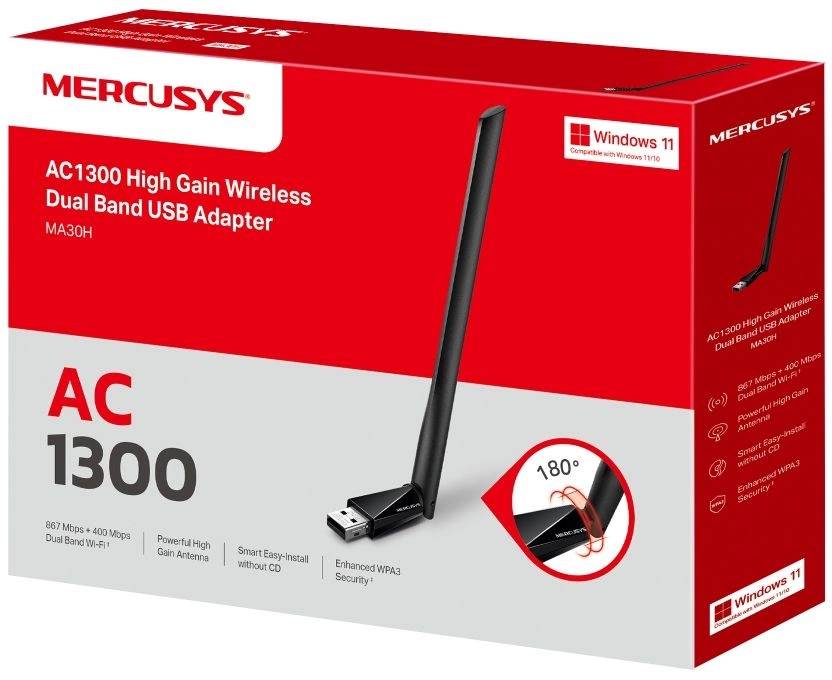 Сетевая карта MERCUSYS Сетевой адаптер Wi-Fi MA30H AC1300 USB 2.0 1ант.