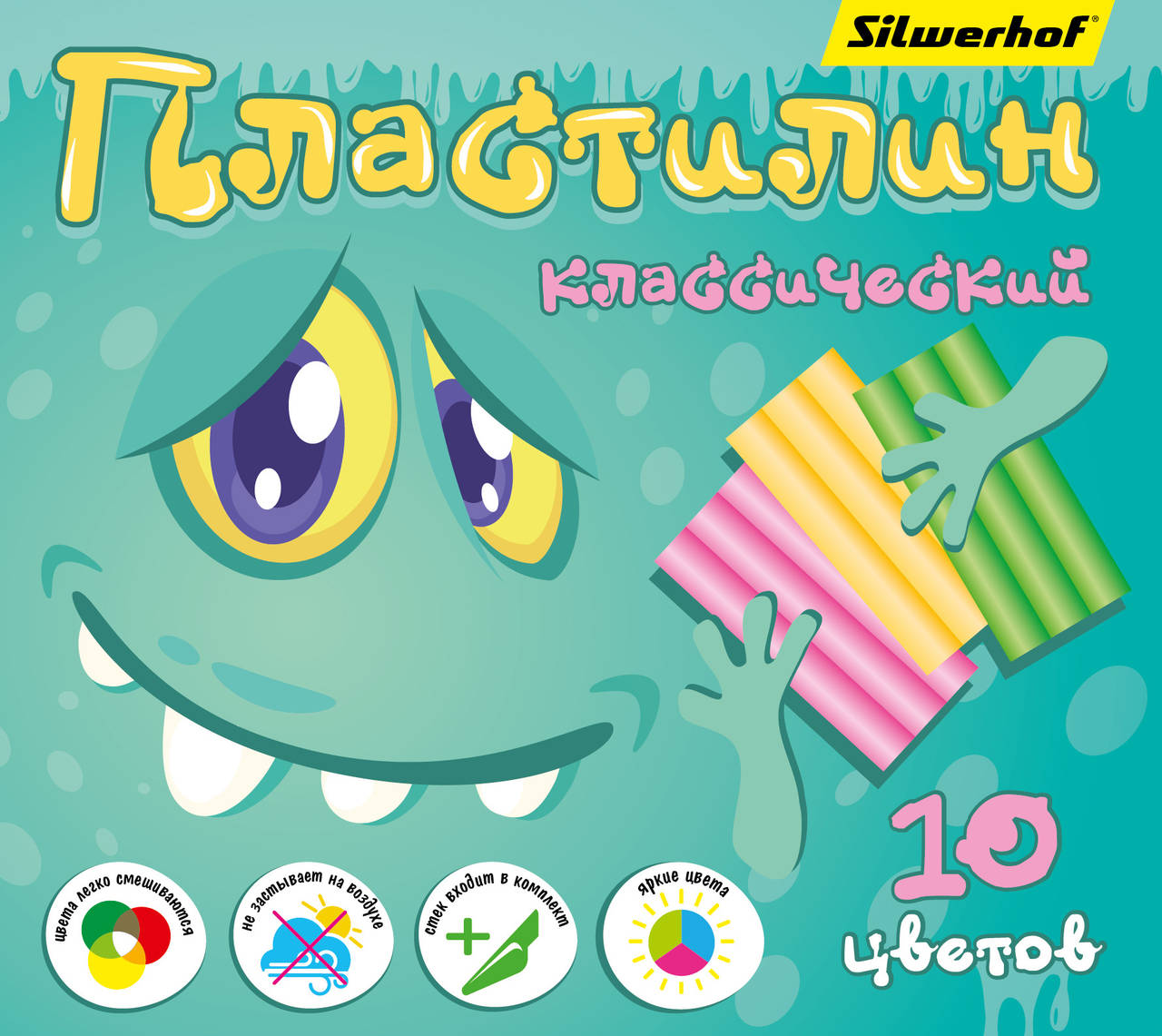Школьная канцелярия SILWERHOF Пластилин Монстрики 10цв. 150гр. стек картон.кор.