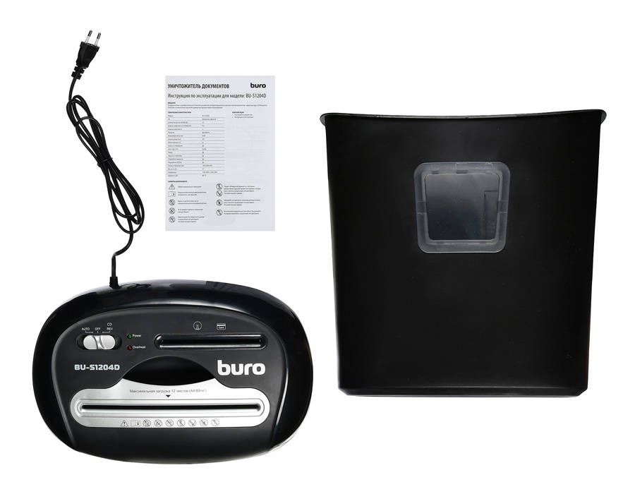 Шредер BURO Шредер Buro Office BU-S1204D (секр.P-4)/фрагменты/12лист./21лтр./пл.карты/CD (OS1204D)
