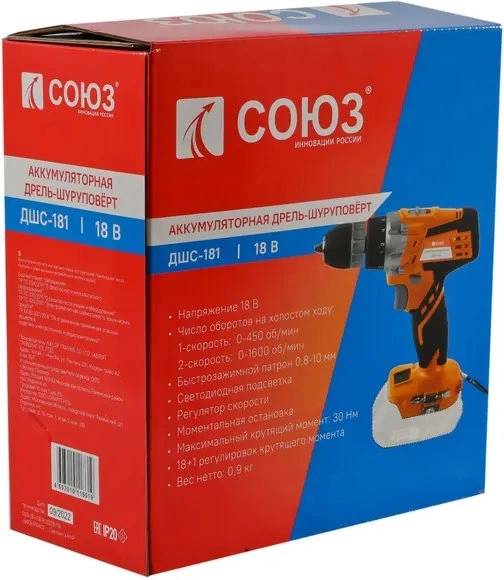 Шуруповерт СОЮЗ Дрель-ДШС-181 аккум. патрон:быстрозажимной