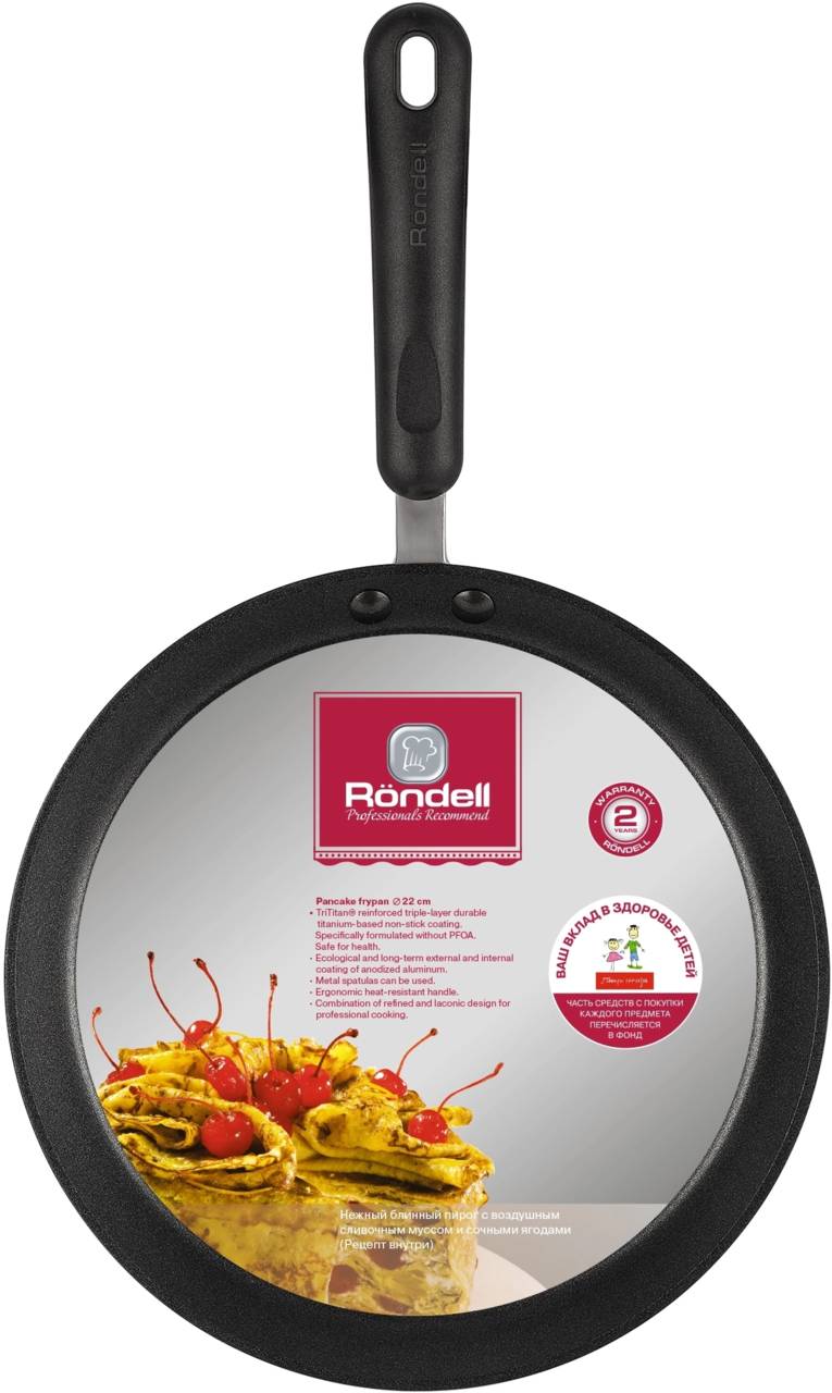 Сковорода RONDELL блинная Pancake frypan RDA-274 круглая 22см покрытие: TriTitan ручка несъемная черный| Характеристики | |