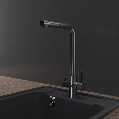 Одним из главных преимуществ смесителя Z-5421 PVD graphite является встроенный вентиль для фильтра питьевой воды. Это позволяет получать чистую воду прямо из крана, что особенно важно для здоровья и комфорта. Г-образный излив с поворотным механизмом обеспечивает удобное направление потока воды, упрощая процесс мытья посуды и наполнения емкостей.