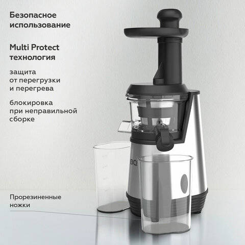 Соковыжималка BQ J2003, 200 Вт, стакан 0,6 л, емкость жмыха 0,6 л, металл, серый, 86197688
