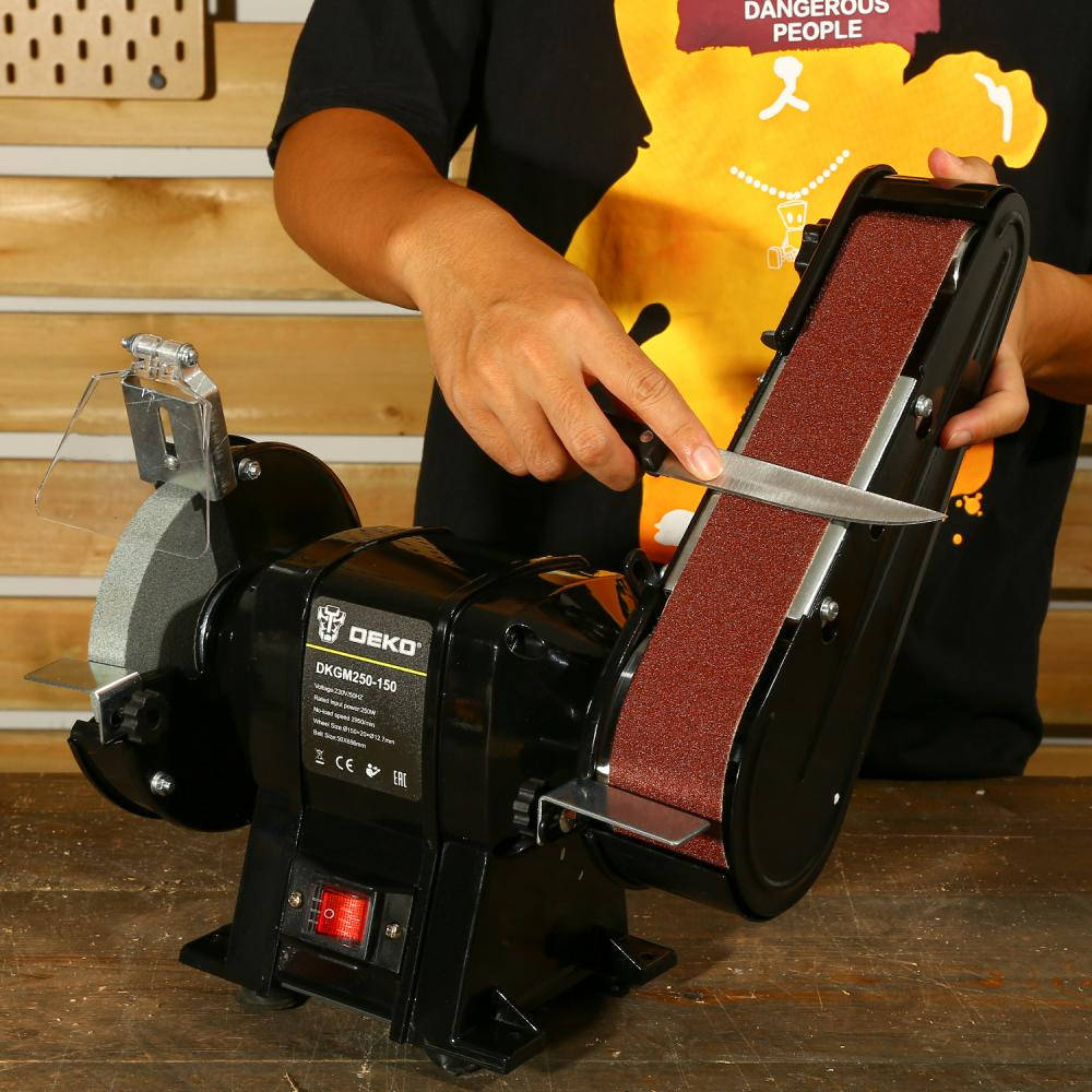 Станок заточной (точило) DEKO DKGM250-150 используется для заточки и шлифования инструмента. Модель отличается небольшими габаритами, что существенно облегчает его транспортировку. Шлифовальные диски закрыты защитными кожухами, которые обеспечивают безопасность оператора.