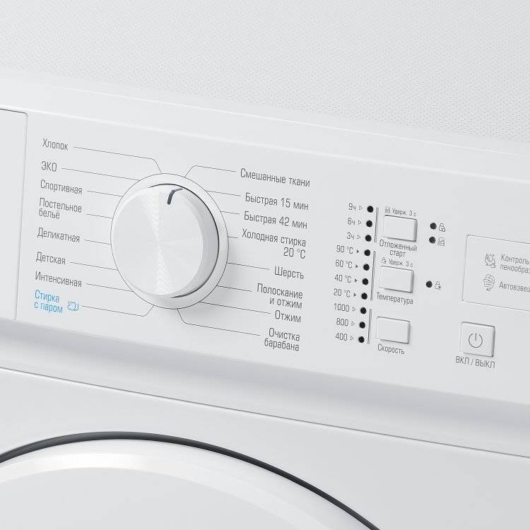 | Режимы и программы: | Хлопок, Деликатная, Интенсивная, Смешанные ткани, Быстрая 42/15 мин, Холодная стирка 20С, Отжим, Шерсть, Полоскание и отжим, Очистка барабана, ЭКО, Детская, Постельное белье, Спортивная, Стирка с паром |