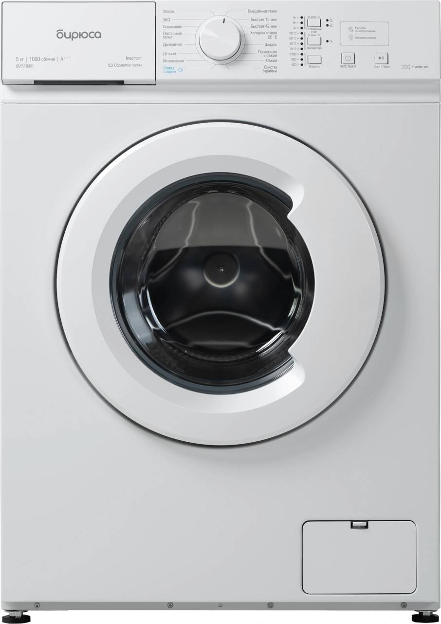 Стиральная машина БИРЮСА WM-SM510/08 класс: A+++ загр.фронтальная макс.:5кг белый инвертор