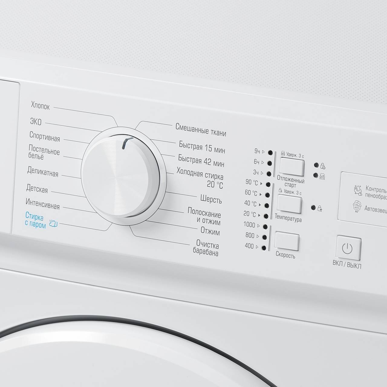 | Безопасность и управление: | блокировка от случайного нажатия, защита от детей, контроль дисбаланса, контроль уровня пены, таймер отсрочки запуска |