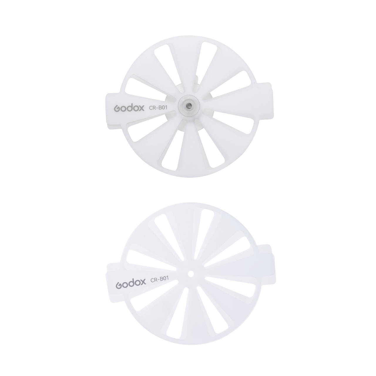 Отражатель Godox Knowled CR-B01 – двуслойная насадка для креативных ламп Godox KnowledC7R и C10R, которая используется для уменьшения угла светового луча. Насадка имеет простое крепление на присоске и может регулироваться вращением диска.